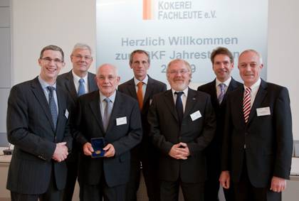 Hans-Jürgen Killich (3. v.l.) nach Übergabe der Koker-Medaille im Kreis der Mitglieder des VDKF-Vorstandes zusammen mit Herrn Jürgen Eikhoff, Vorstand Produktion der RAG Deutsche Steinkohle AG (rechts) |