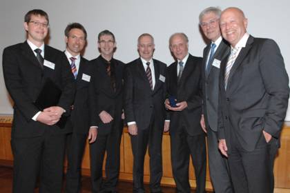 Hans-Hermann Müller (Koker-Medaille) und Jan Schöneberger (Förderpreis) zusammen mit Mitgliedern der VDKF-Vorstände sowie mit Jürgen Eikhoff (Mitglied des Vorstands der RAG AG). V.l.n.r: : Jan Schöneberger, Markus Masuth, Peter Liszio (Vors. VDKF), Jürgen Eikhoff, Hans-Hermann Müller, Rainer Worberg, Carlo Borggreve (Vors. der VDKF-Stiftung) |