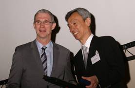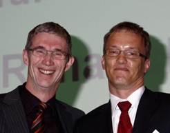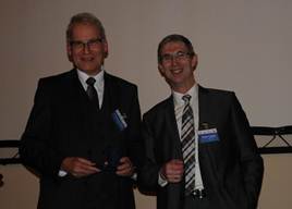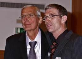 Peter Liszio mit dem Träger der Koker-Medaille Ltd. Bergdirektor a. D. Dipl.-Ing. Walter (links) und mit dem Träger des VDKF-Förderpreises Dipl.-Ing. Diethmar Richter (rechts) |